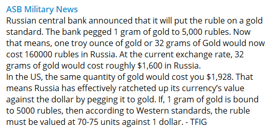 Russia on the gold standard but only after the idiots allowed for decades of oligarchs to move their gold out?