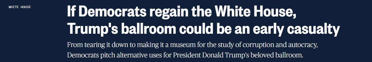Letting the 90,000-square-foot structure remain a ballroom would only validate the means by which Trump built it: demolishing the East Wing without forewarning and bankrolling the project with private donations, Democratic officials suggested.