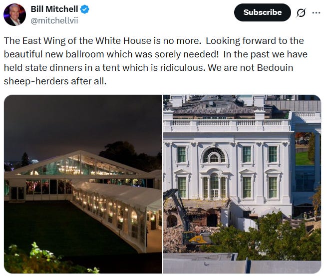 Trigger word of the day, we are not Bedouin sheep-herders, at least he is not using interns as ash trays for cigars, when Trump upgrades from king to emperor and more Trump White House ballroom memes!