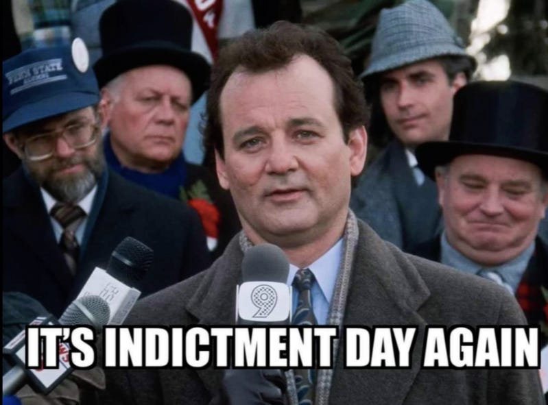 Every day is Trump indictment day, American ājusticeā (Kangaroo courts), the jury + judge + Michael Cohen all look familiar, some good news (about precedents being set) and more Trump trial memes!