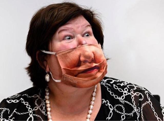 Maggie De Block (Minister of Health Belgium) wearing a mask like this