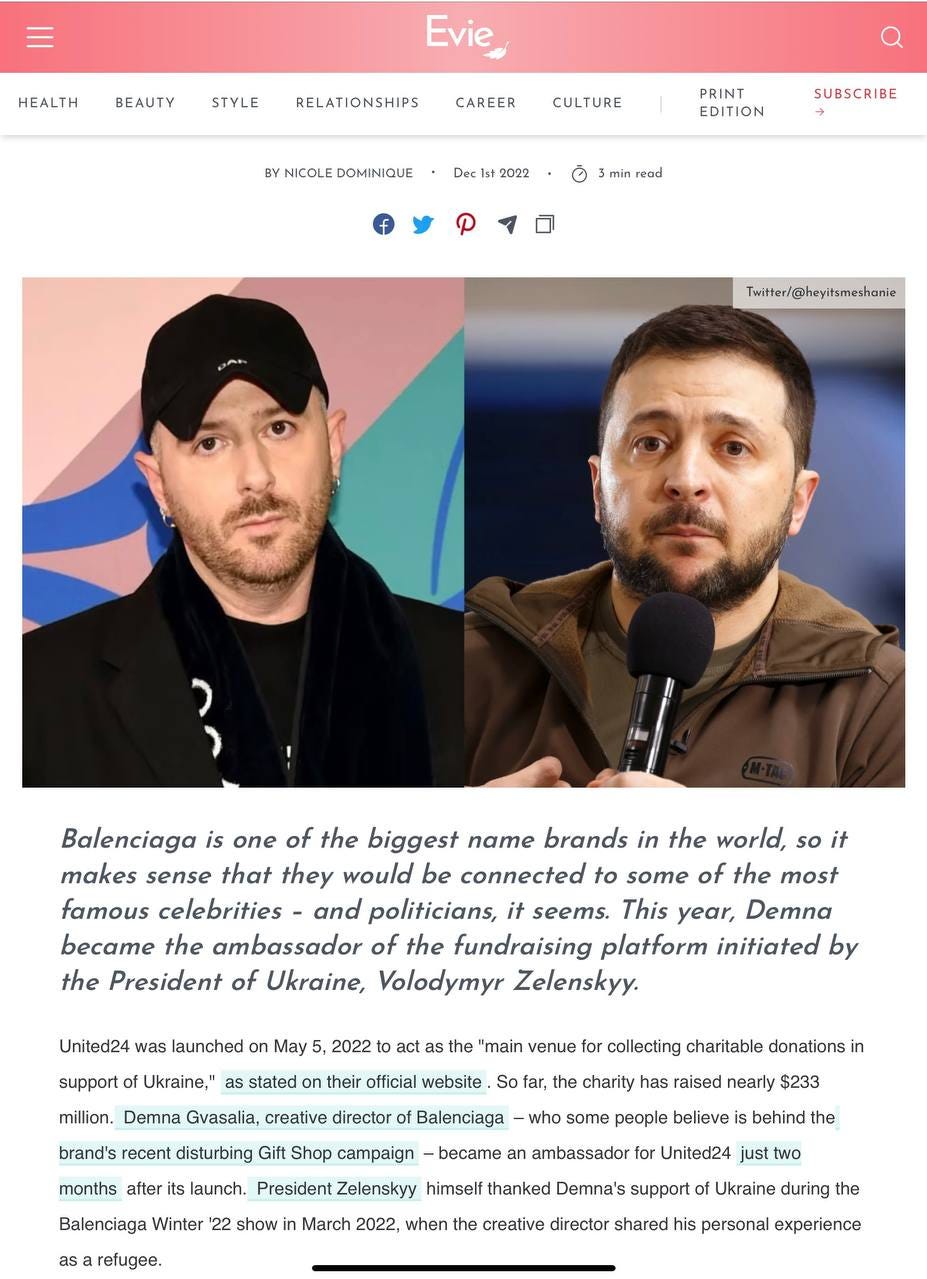 Anyway, it’s time to do a post on the Balenciaga scandal as I can assure you, this attempt at gaslighting and distracting us is NOT what happened: