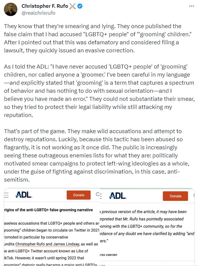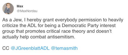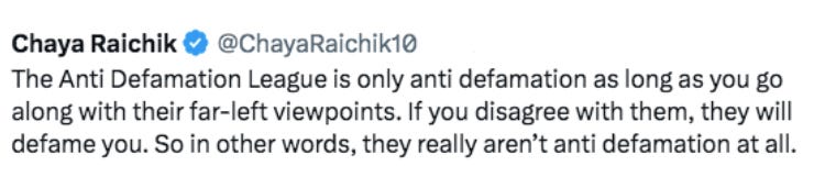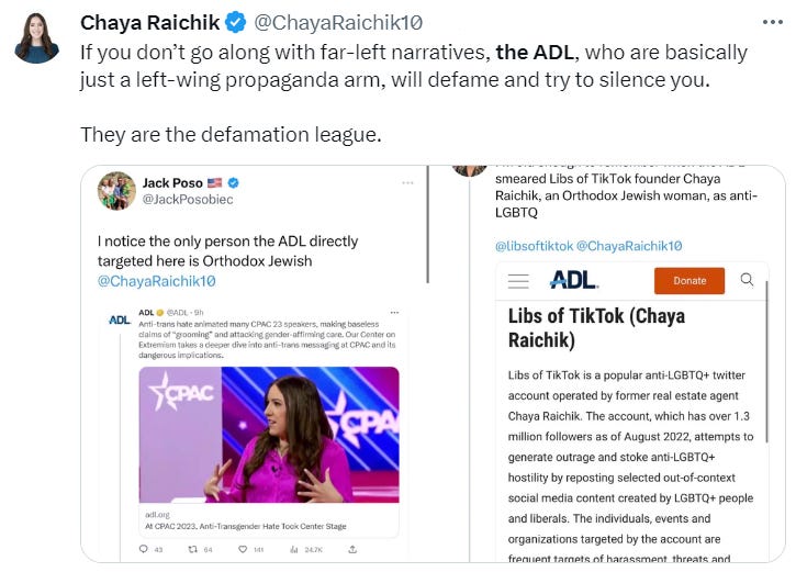 And yet, nobody, not even the Orthodox Jewish woman who runs the Libs of Tik Tok, is safe from the ADL: