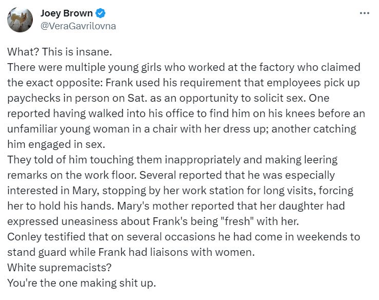 Here is the unofficial story as of course, Frank and his supporters blamed a black man: