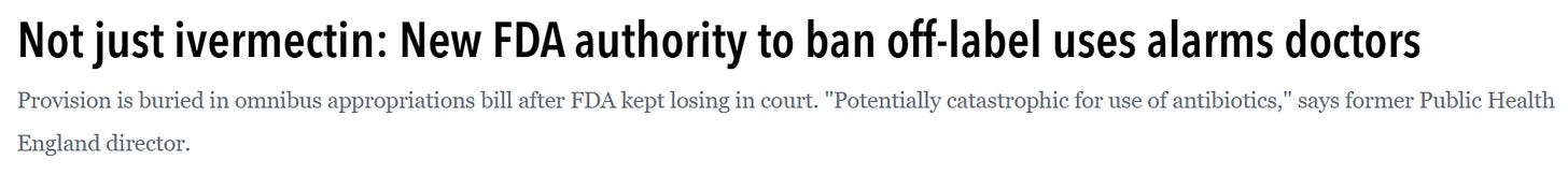 The authority to ban off-label uses was buried on page 3,542 of the 4,155-page omnibus appropriations bill signed into law at year's end, though it's specifically applied to "banned devices."