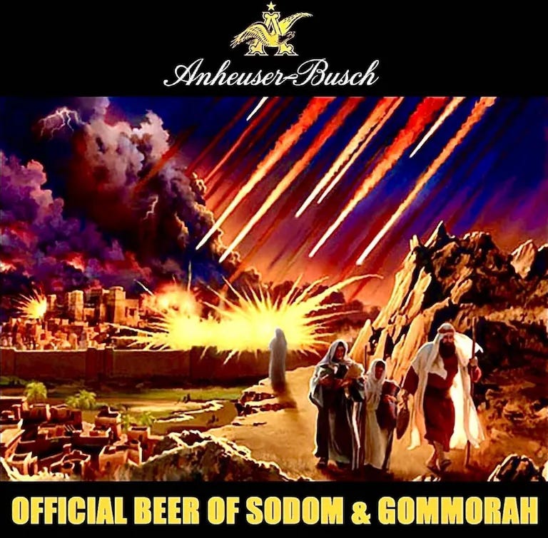 New slogans ("Official beer of Sodom & Gomorrah"), can designs & ads. Have NOT learned a thing, not even a princess of beers & more Bud Light goes trans memes as they keep insulting their customers!