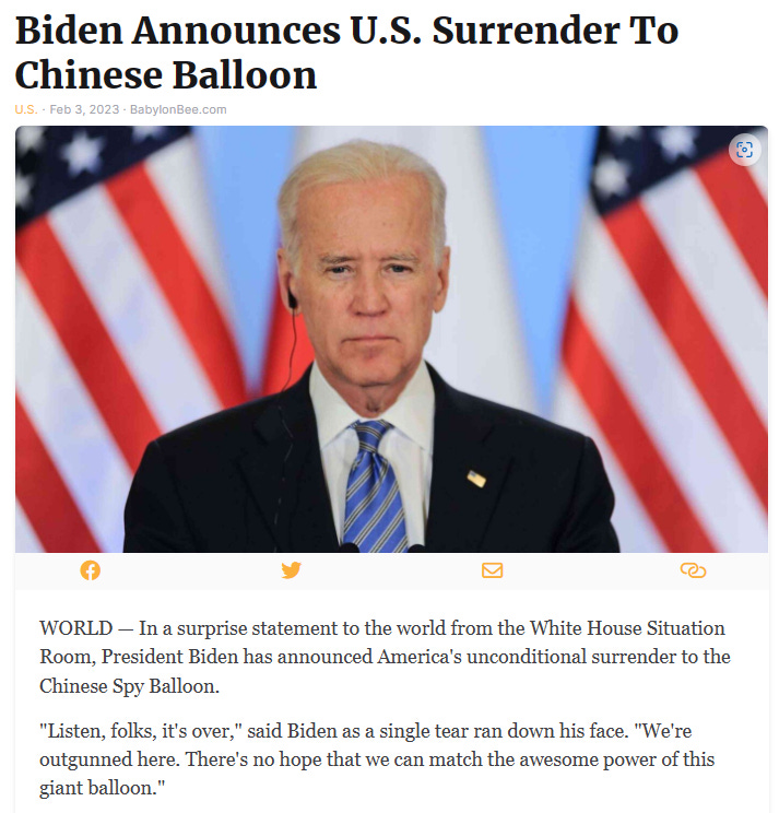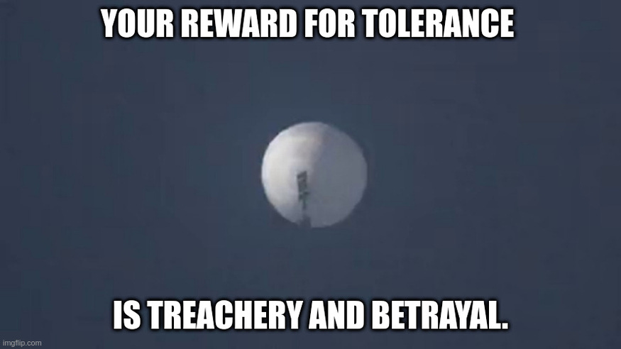 One quick comment: IF the Biden Regime were to simply shoot the balloon down, it would unite the country and probably give him a boost in the polls. Notice how they simply don’t care to do that???