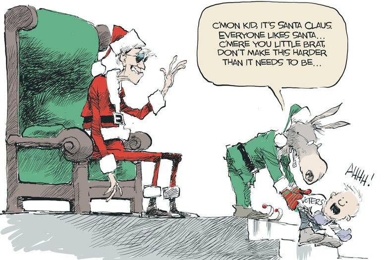 Merry Christmas from Satan Klaus and the Bidens. Like Epstein, stockings don't hang themselves. All I want for Christmas is heat + food, could really use a few lumps of coal and more Christmas memes!