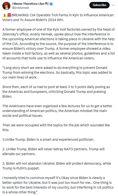 In addition, it’s been revealed that the CIA is conducting USA election interference via the Ukraine: