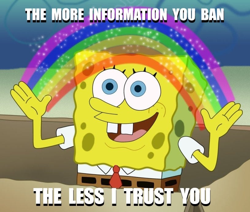 The more information you ban… The less I trust you…