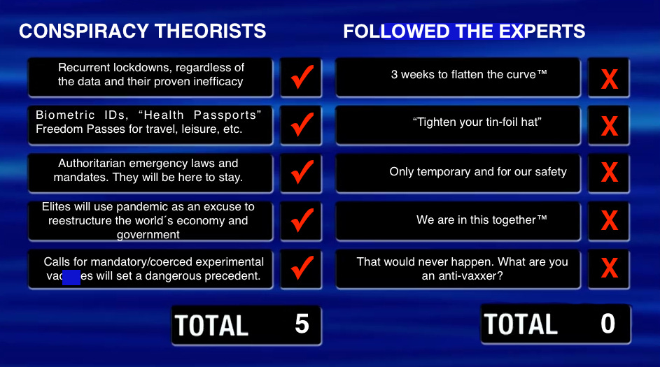 Conspiracy theorists vs followed the experts…