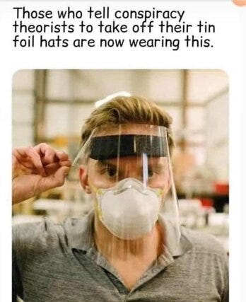 Those who tell conspiracy theorist to take off their tin foil hats are now wearing this: