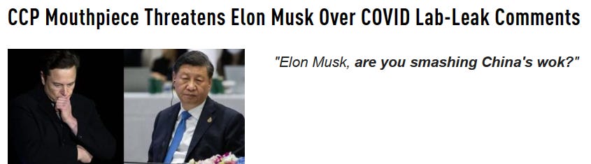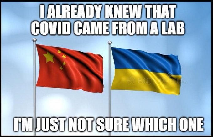 With the war against Russia not going so well for the US-NATO empire, the People’s Republic of China not being so cooperative when it comes punishing the Russians with sanctions, and our psychopatic Neocon overlords still looking for a little WW3 action (as debt fueled western economies start to implode…), it looks like its now (sort of) OK to talk and joke about a US-funded Chinese biolab leak being responsible for COVID: