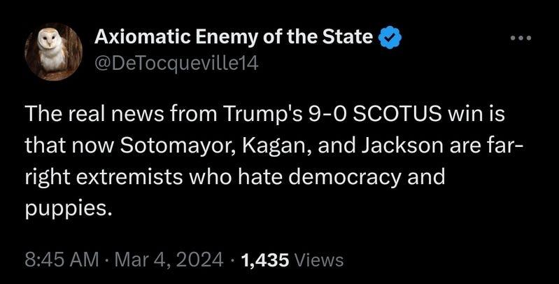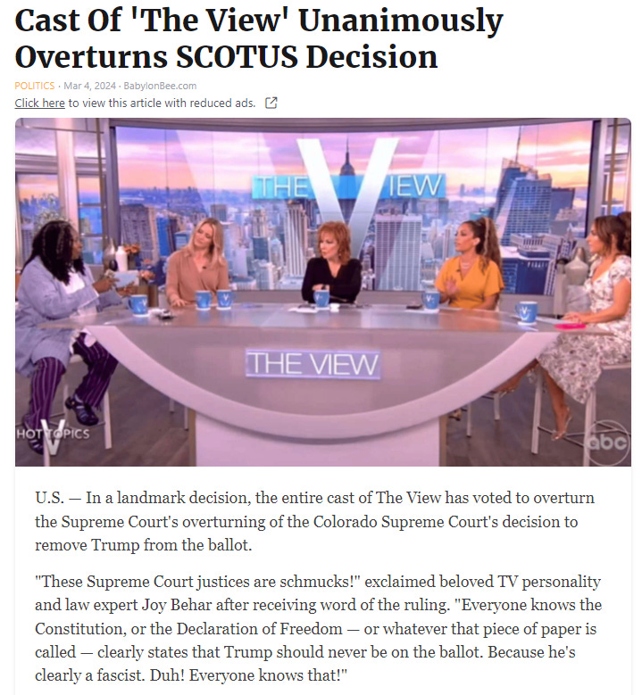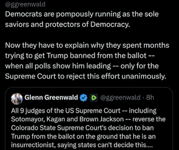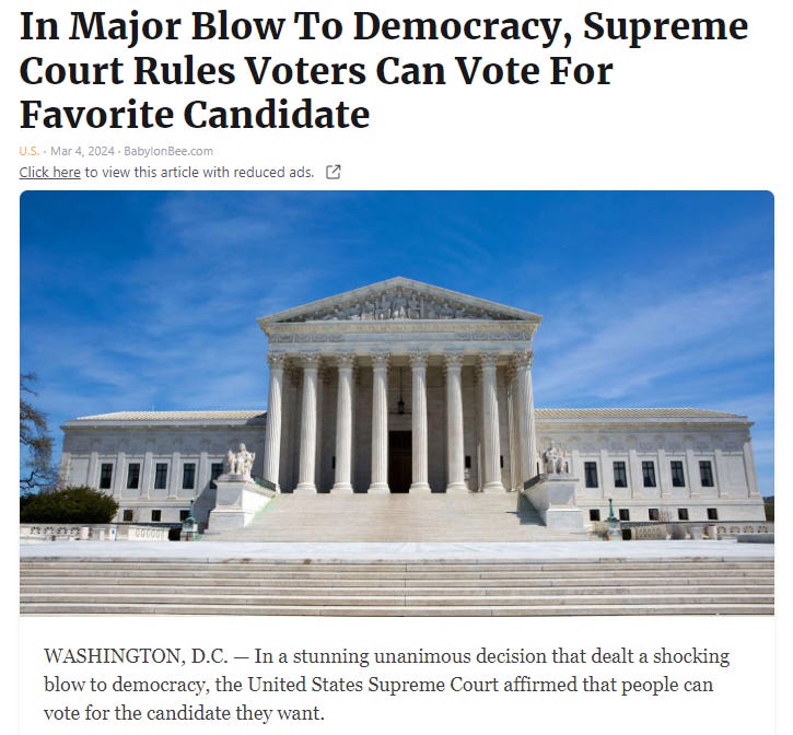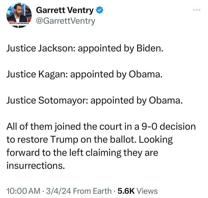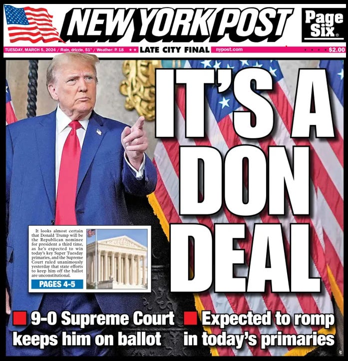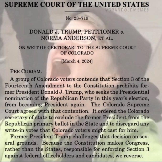 SCOTUS has just ruled that Trump can be back on the ballot just in time for Super Tuesday where the dead rise to do a dry run for the main day of Kabuki Theatre later in November…:
