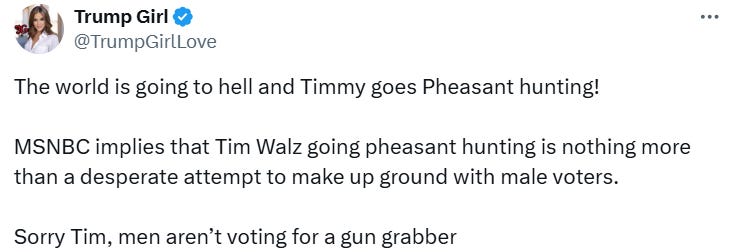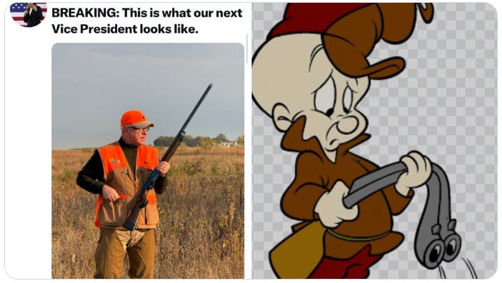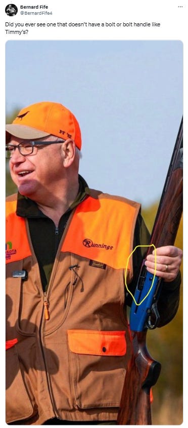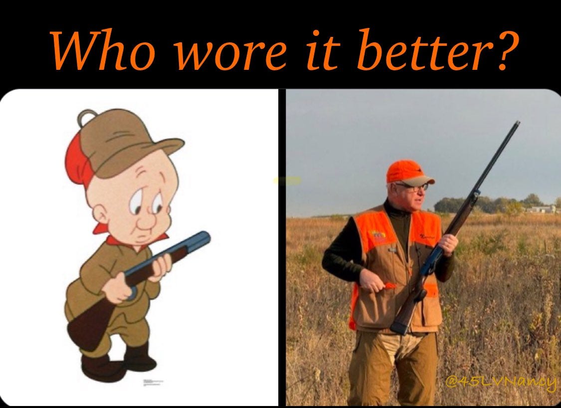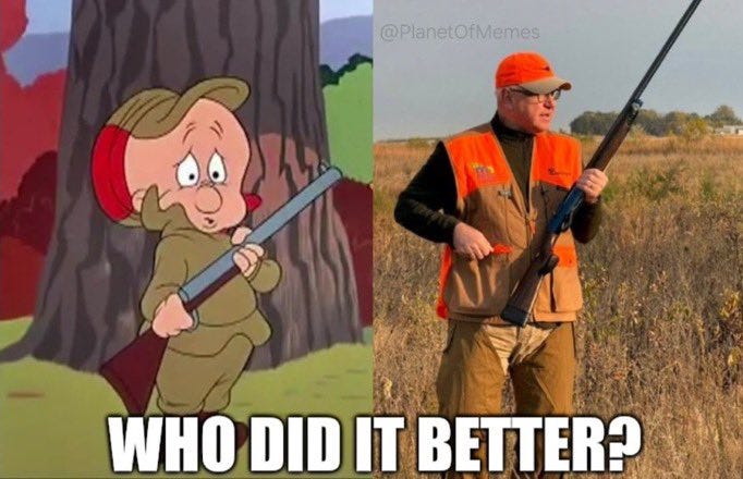 And now for some Elmer Fudd aka Tampon Tim Walz goes shooting memes…