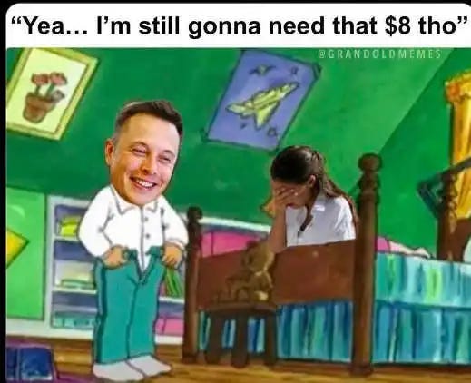 Cleaning house of staff (coincidentally the kiddie porn is now gone), Trump (waiting for mean tweets), Kathy Griffin, AOC, $8, costume ideas, some classic memes and more Elon Musk buys Twitter memes!