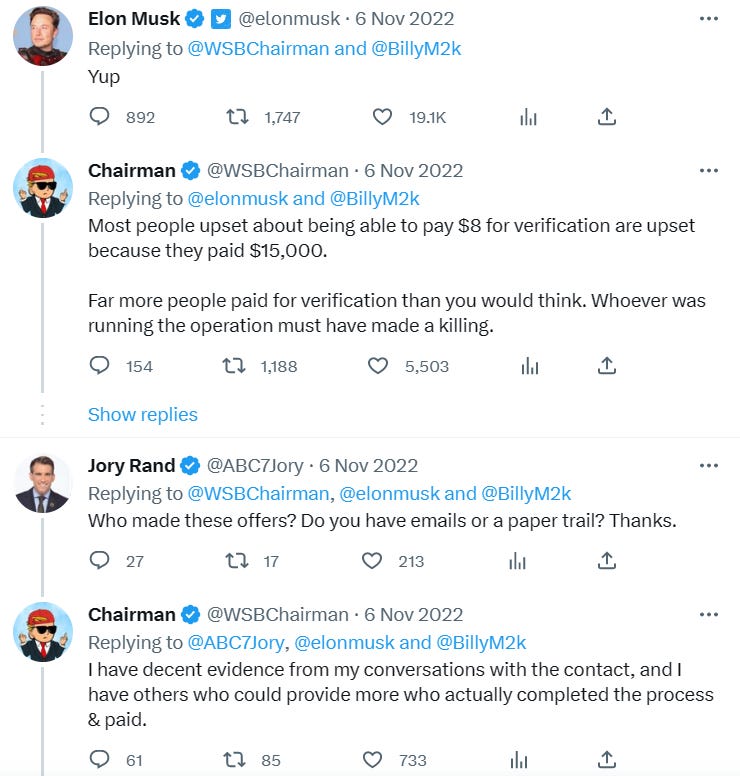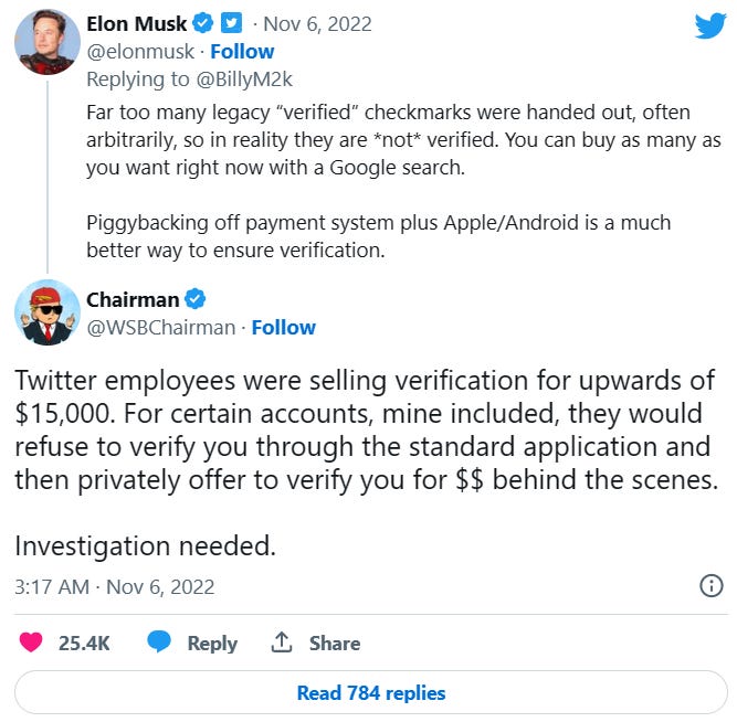 In fact, one of the only sure ways to get a blue check account was to buy it through back channels. After Musk's takeover of the company, it was revealed that under the previous management Twitter staff were actually selling blue checkmarks to some users for up to $15,000 a pop. This might explain why certain people and organizations are so angry that Musk is now selling them for only $8 a month.