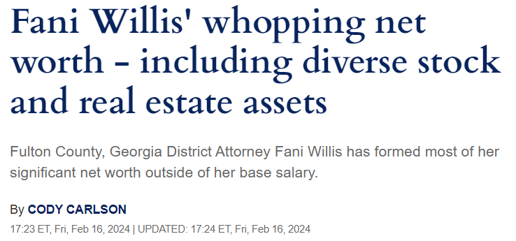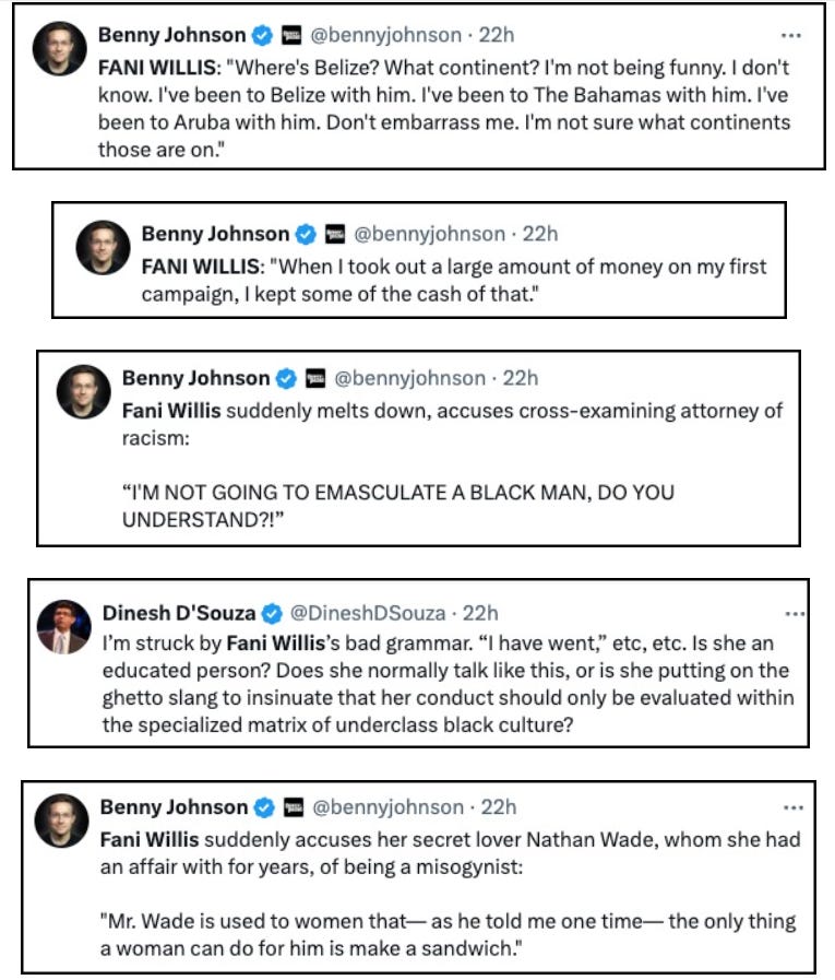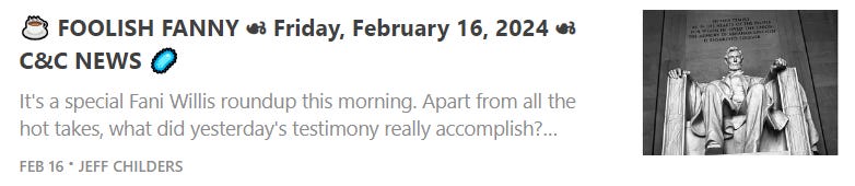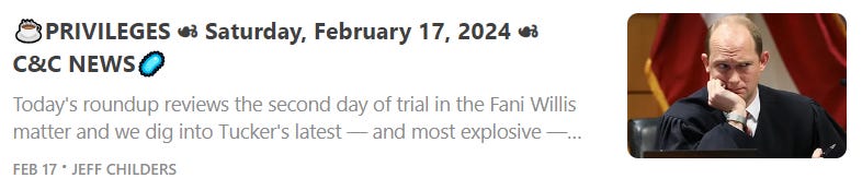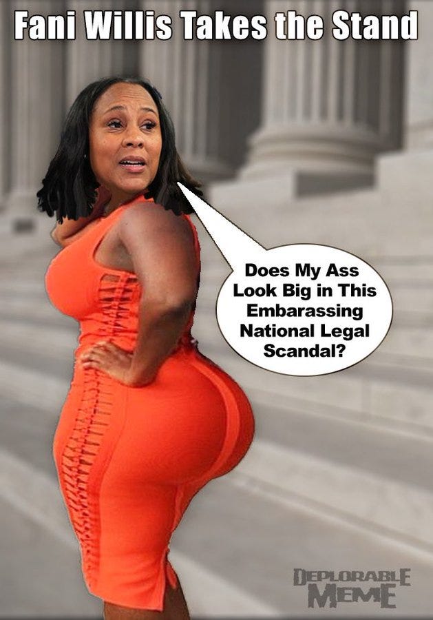 Lawyer Jeff Childers has done some great posts summarizing the Fani Willis trainwreck of a trial and what happens when the Deep State entrusts a diversity hire to implement their plans thinking no one will dare question her: