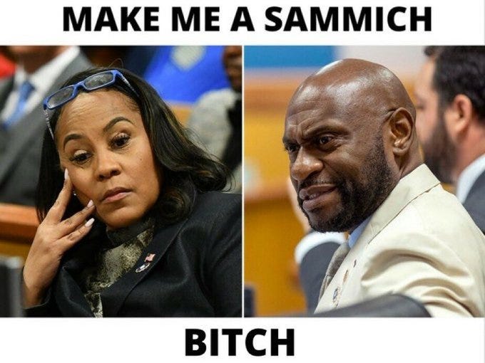 Cabin fever with a gigolo employee, Only Fans Fani, Wade traded down when it comes to women, make me a sammich b*tch, disposable Fani, all about the money Fani and more Fani Willis memes!