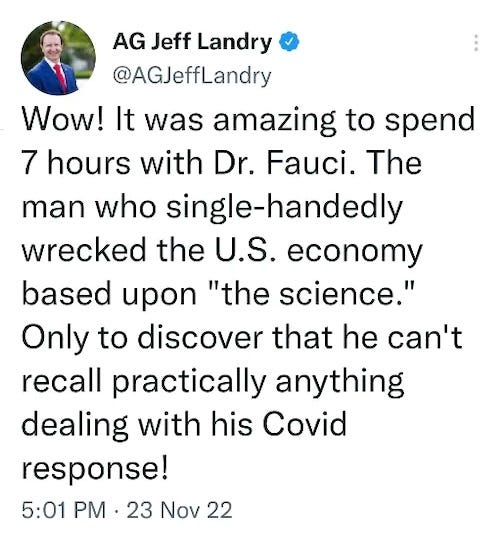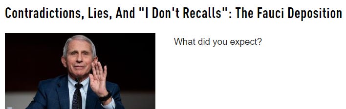 Dr. Malone has posted the transcribed videotaped deposition of Dr. Anthony Fauci from November 23, 2022 as a 446 page PDF file (also available here on a government site):
