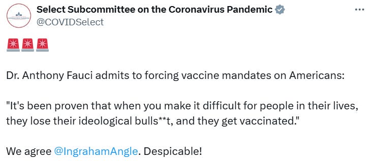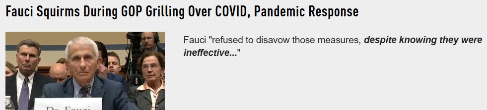 Saint Fauci was again before Congress for more kabuki theatre hearings: