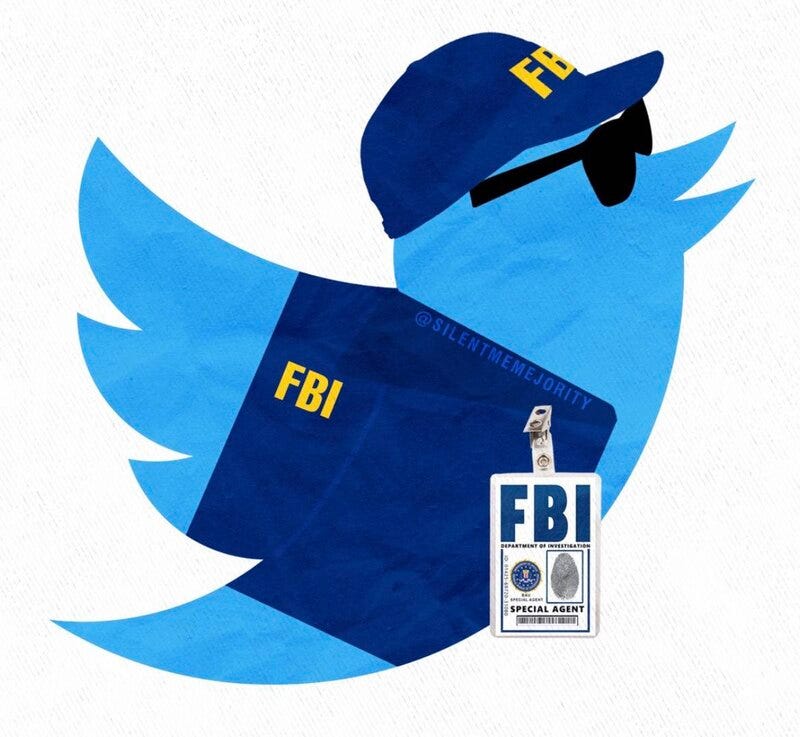 New Twitter or FBI logos, Fascist Bureau of Intimidation (FBI), how to spot domestic terrorists and false flags, FBI’s greatest [false flags?] hits, FBI priorities and more (Twitter parent) FBI memes!