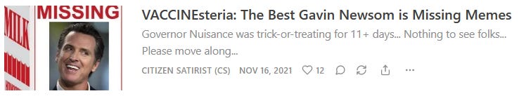 COVIDsteria: An Oral History of America’s Great Reset (Table of Contents) is a fictional satire along the lines of a Studs Terkel oral history or Max Brooks' World War Z published as a serialized book on Substack while Tales From the Great Reset is our occasional satirical short-story series and BREAD&CIRCUSES posts are weekly humor roundups. In addition, check out our Community + Links to Alternative COVID & Great Reset Resources...