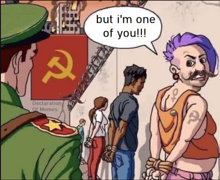 "But I'm one of you" - LMAO. They all think they are "the chosen" don't they. Then they crash into the rude rock of reality and are disposed of. Stalin called them "Useful idiots". Here's some examples:
