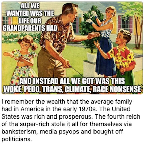 Get away from big city weirdness to a small town, the Mariage Bonus, Domestic Extremist, be a normal dude from 20 years ago and more Great Reset resistance by embracing normality memes!