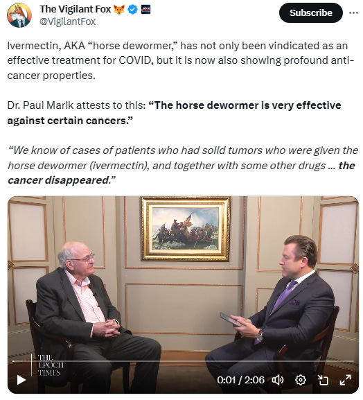 One of the reasons I think they went after Ivermectin is to protect the cancer industry as there is some speculation that parasites have something to do with causing some cancers. Thus, you need an inexpensive antiparasitic drug to treat it: