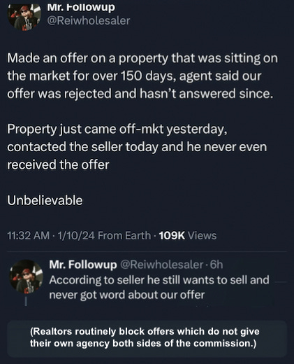 if the house is on the market for a long time, it might be better to wait till it goes off, contact the owner, and give the same offer. Without 'intermediate'. in our case the realtor owned the house. then there is no choice.