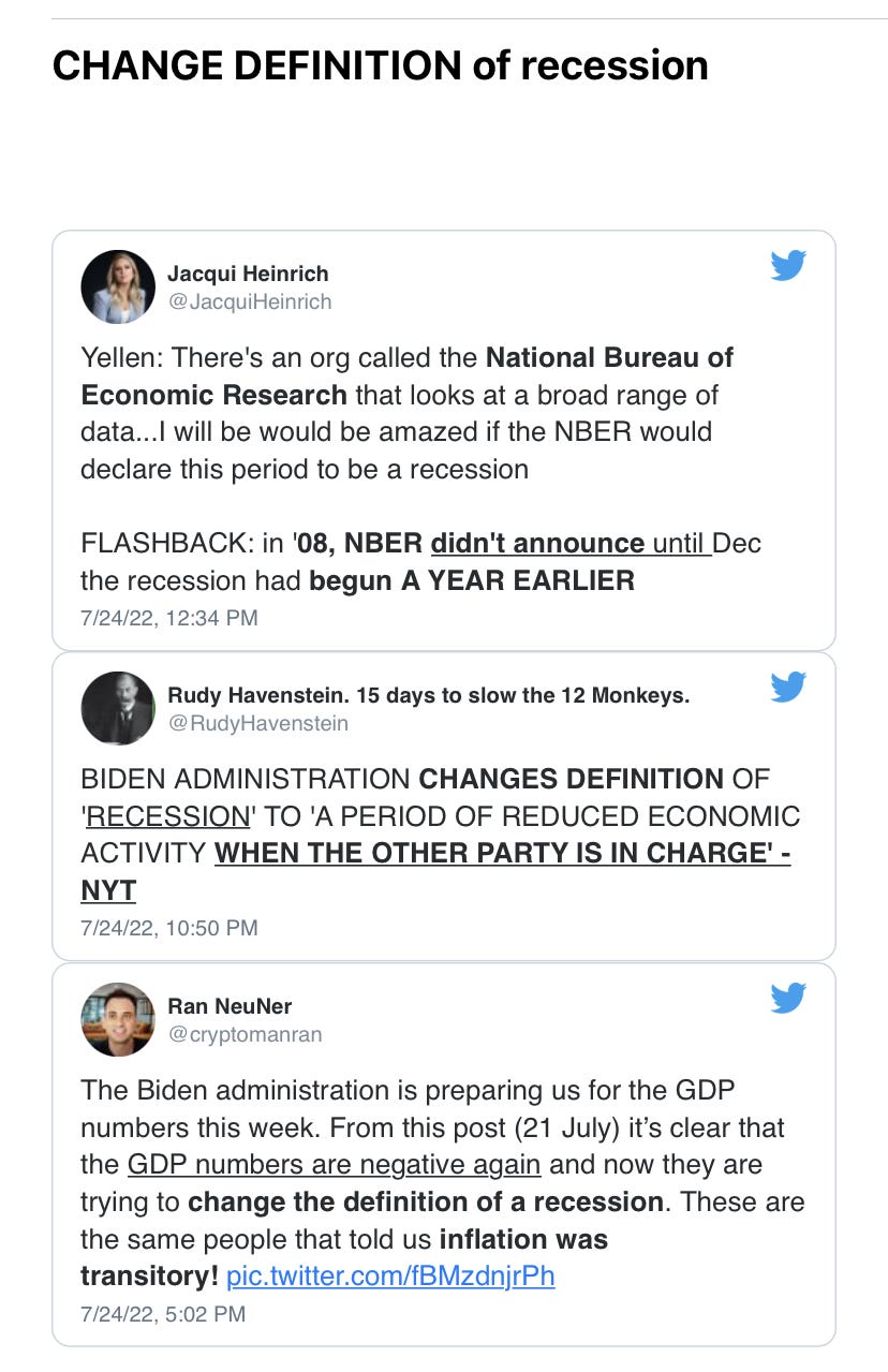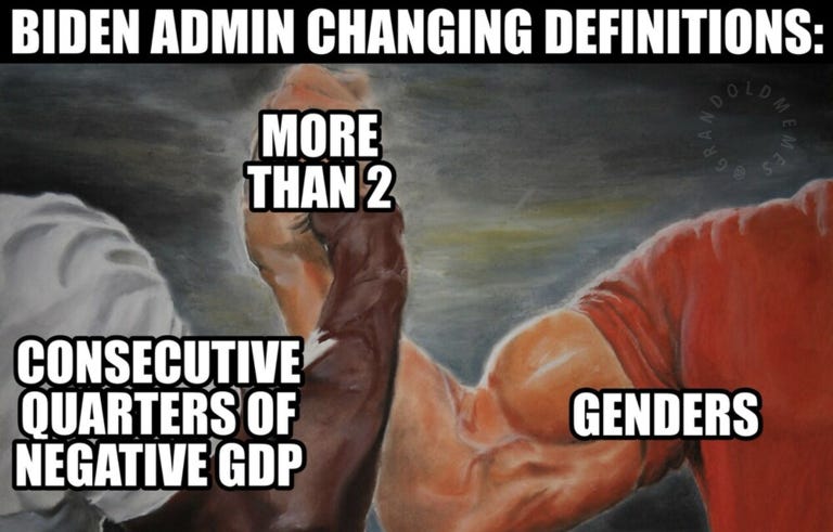 What is a recession? Redefining excuses, still Putin’s fault, everything is fine, trust experts & more high inflation memes as recession definitions get canceled & redefined like vaccines & gender!