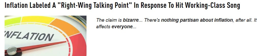Did you catch that? Inflation apparently is now “a right-wing talking point” instead of an economic phenomenon broadly defined today as a general and sustained increase in consumer prices and a decline in the value of money.