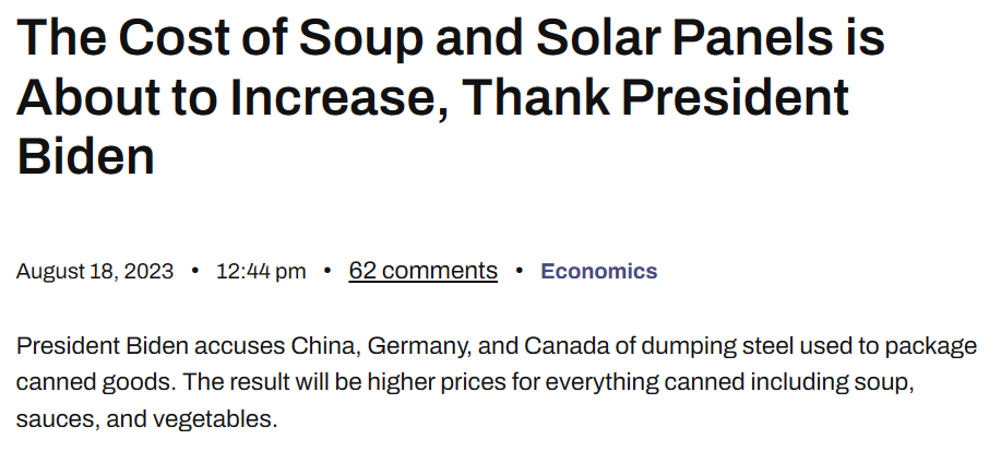 Chinese products would be subject to the highest tariffs of the three countries—a levy of 122.52% of their import value. That rate partly reflects Chinese companies’ refusal to cooperate with the investigation to prove their independence from the Chinese Communist Party, an administration official said.