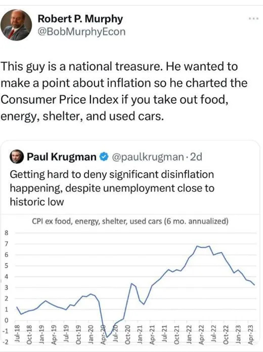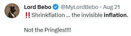 Shrinkflation, times are a changing, Paul Krugman (national treasure...), "we know they are lying..." and more inflation memes as Wikipedia labels inflation a right-wing talking point!