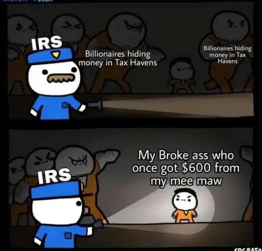 Audit double standards, forget auditing billionaires (its all about your tips + eBay & Venmo transactions), going after "where the money is," Ukraine needs more $ and more IRS memes - happy Tax Day!