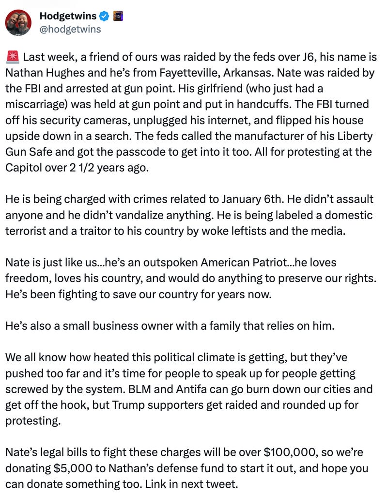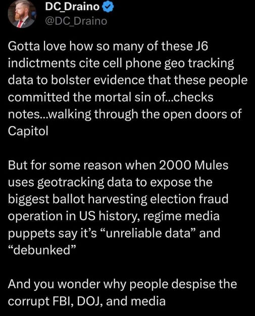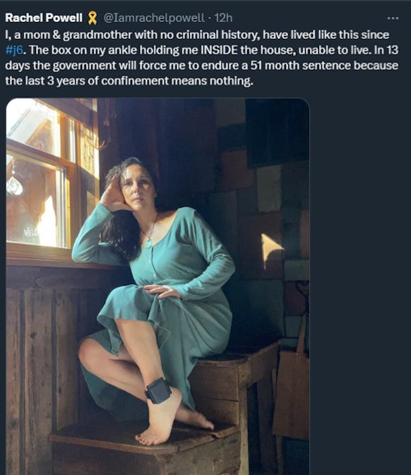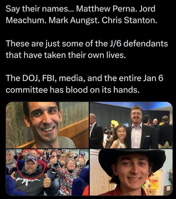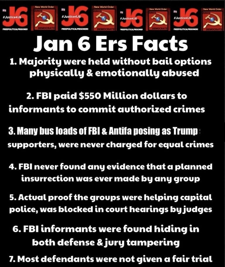 This whole fiasco saddens me deeply. I can’t put into words the horror I feel for those who have been crucified on the alter of this insane manufactured debacle. The damage done to this country that day is incalculable. Those actually responsible should be punished to the fullest extent of the law and those who went along (judges, prosecutors, FBI, DOJ) should be fired, arrested and also prosecuted to the fullest extent of the law. What hurts the most is knowing that will never happen and that the band plays on...