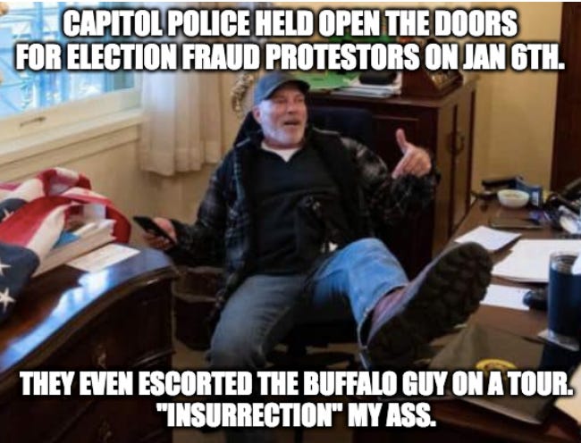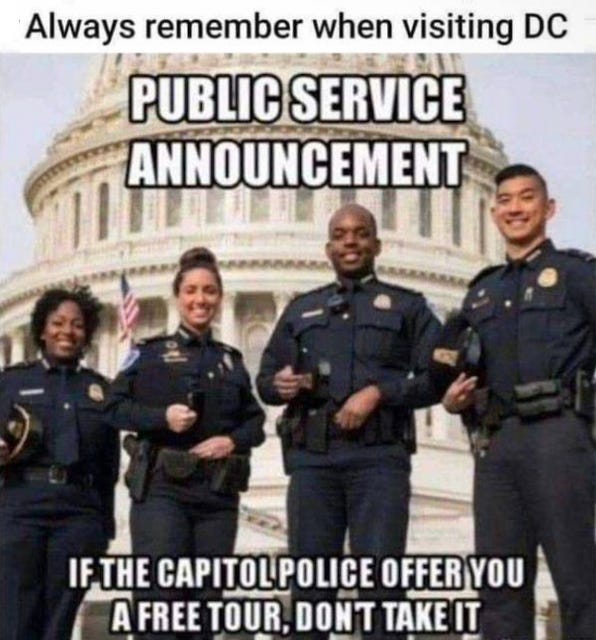 Remembering the real and forgotten victims (the political prisoners), be careful accepting tours from Capitol Hill police and more January 6th memes on the Eve of Jan 6th + some updates!