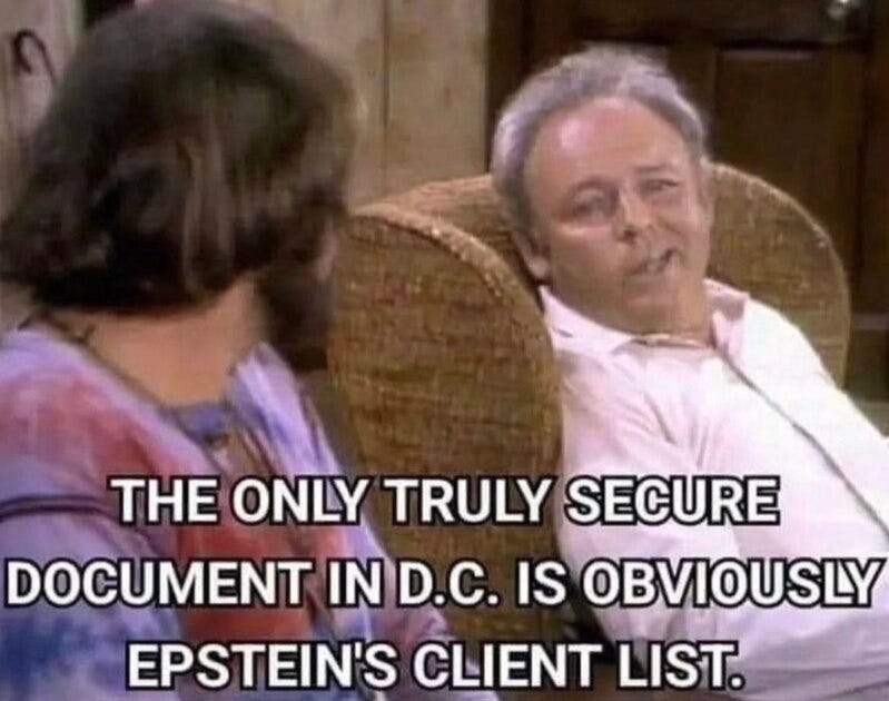 Who says the Windows guy, economists, leftist academics, etc are bores? Guess which Trump hater made 17 island trips and more Jeffrey Epstein memes as we patiently wait for the actual client list!