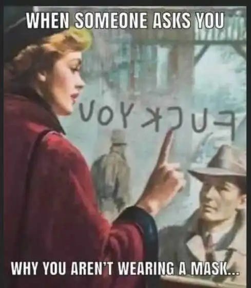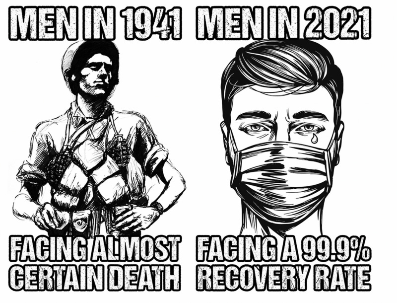 Men in 1941 vs. 2021, patriot vs. liberal tan lines, paging Greta, the forgotten victims, the dumb ages, how to interact with maskholes and more mask memes as they still want to put them back on you!
