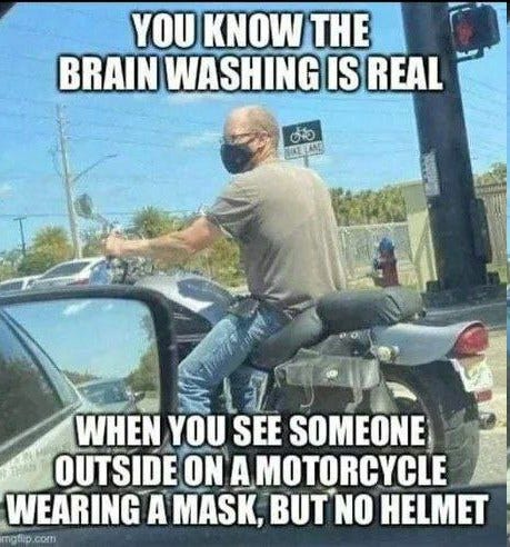 An n95 mask on with the helmet on is the most dumb shit ever. What's next, shoes to go over your shoes?