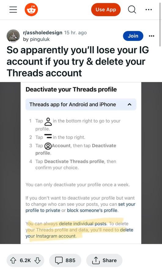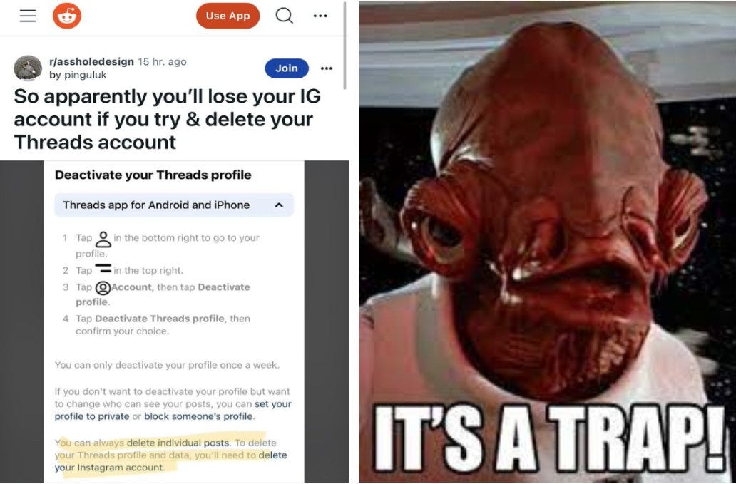 Threads is a roach motel: