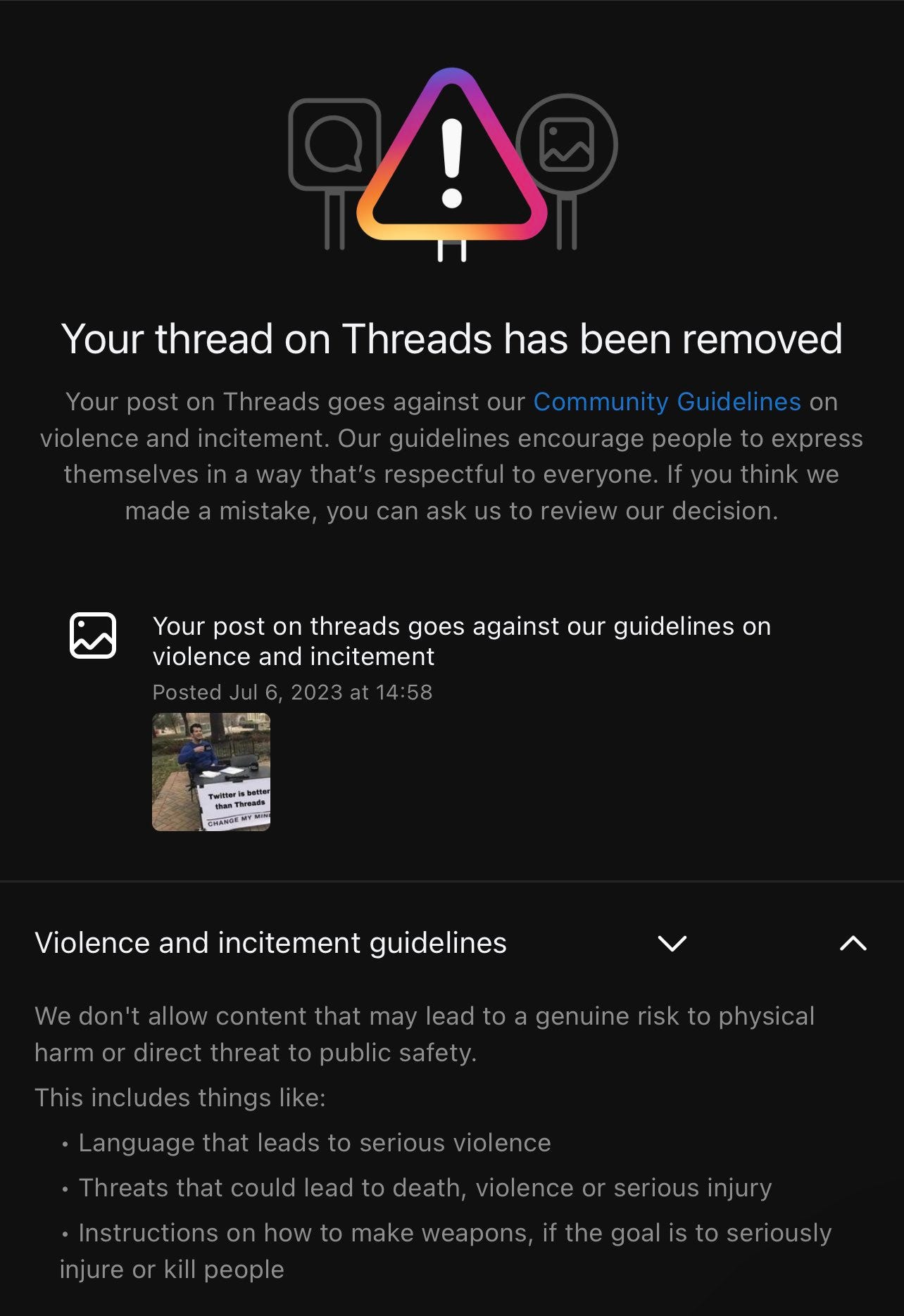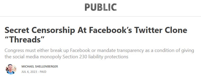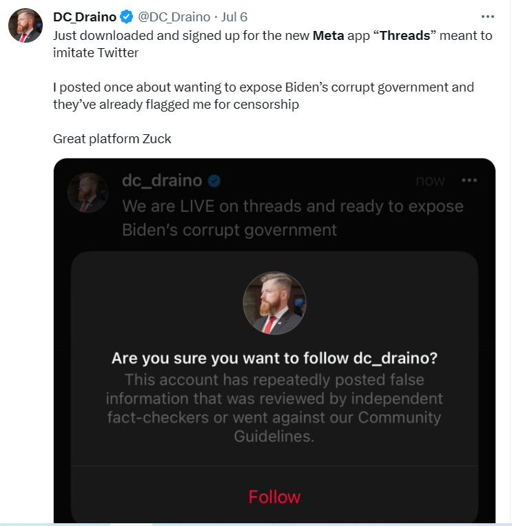 As mentioned on Sunday, don’t bother using Meta’s or Facebook’s new Threads as they are already censoring ANYTHING that goes against official narratives: