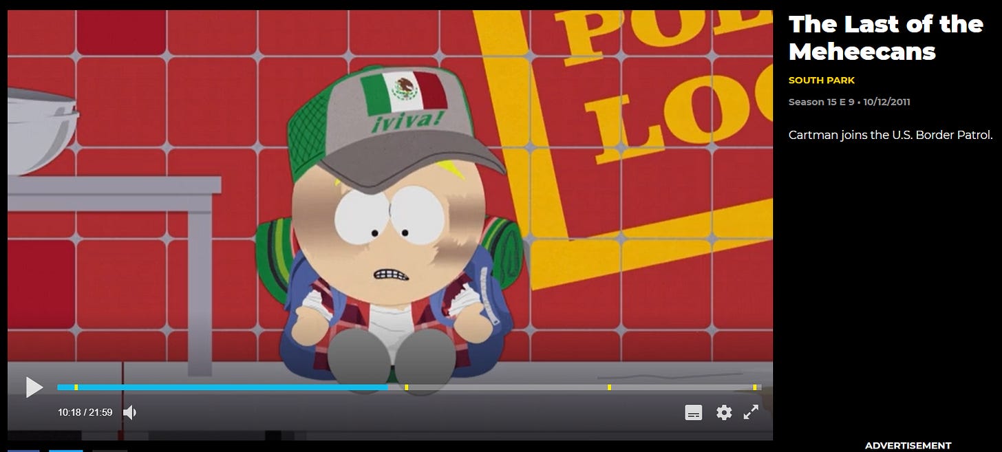 South Park’s “The Last of the Meheecans” has Cartman joining the U.S. Border Patrol: