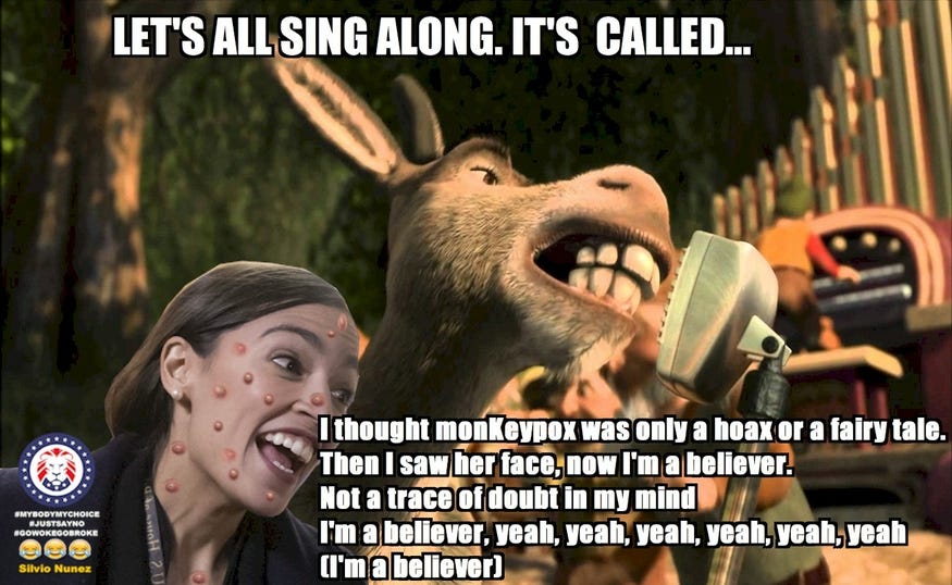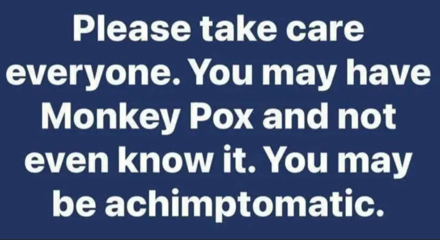 Asymptomatic and long Monkeypox (you know they are coming), Monkeypox origin and transmission theories, Bidenpox, Donkeypox, Eric Feigl-Ding wants masks and more Monkeypox memes!