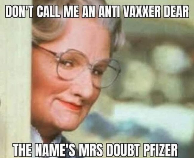 Don’t call me an anti vaxxwer dear…The name’s Mrs Doubt Pfizer…