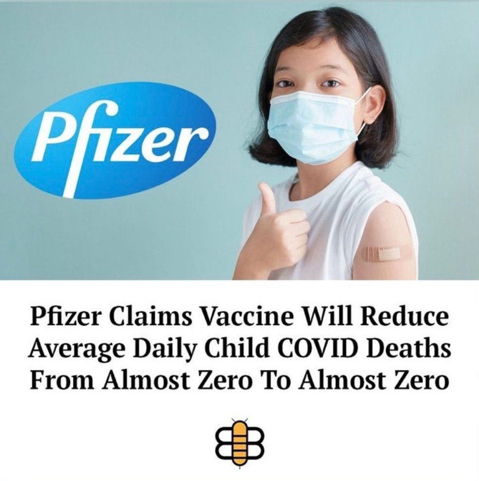 Pfizer claims vaccine will reduce average daily child COVID deaths from almost zero to almost zero…
