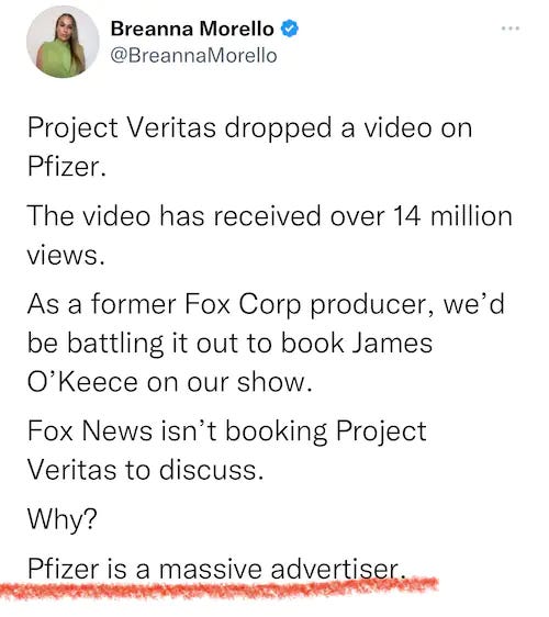 Project Veritas always drips out their sting videos - meaning Pfizer has to be careful of their response…