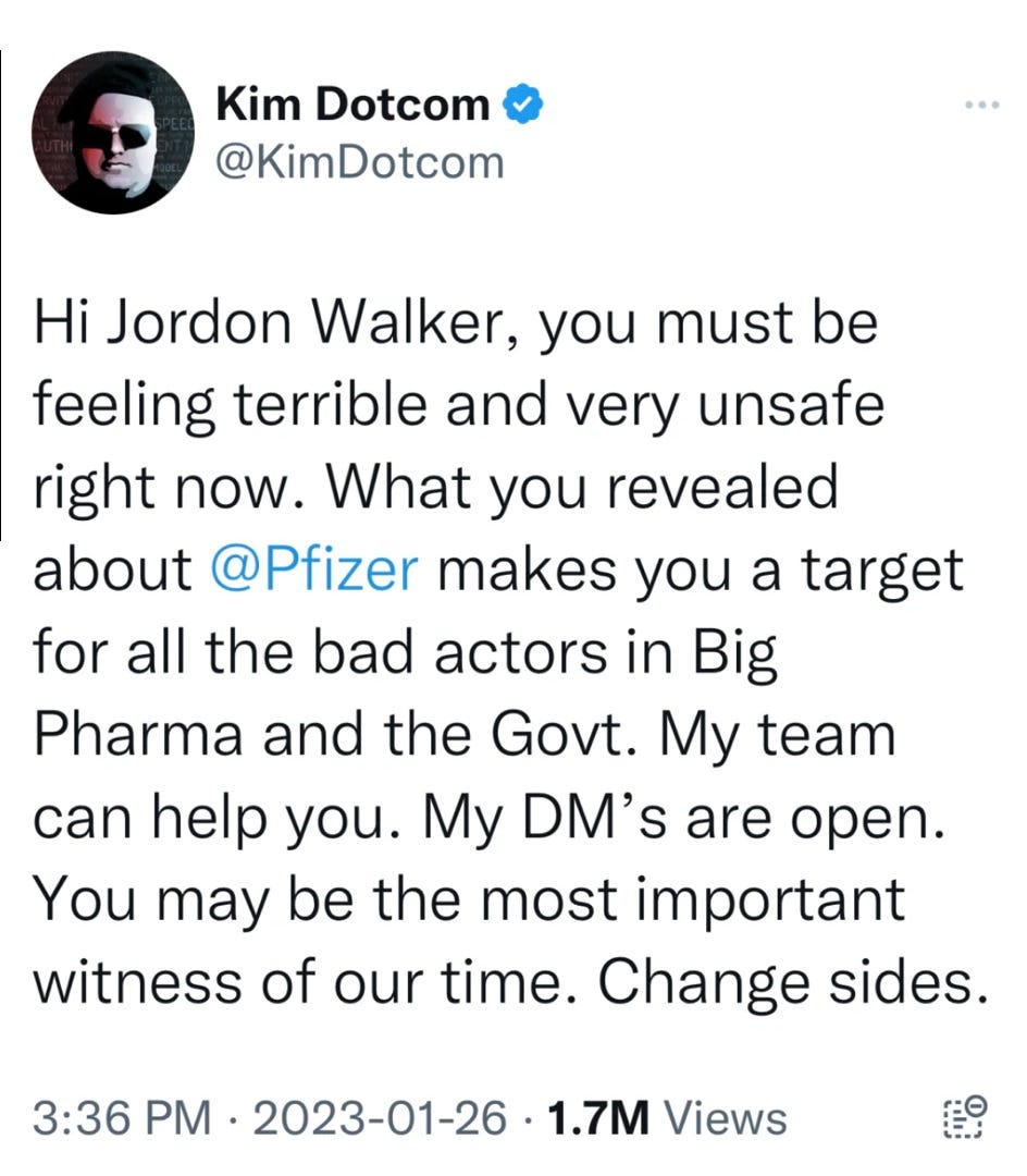 Jordan MUST work for Pfizer in some capacity. This is something HR could determine with legal and communications putting out a couple sentence statement within an hour - not days later (and there is no mention of him in their statement…)