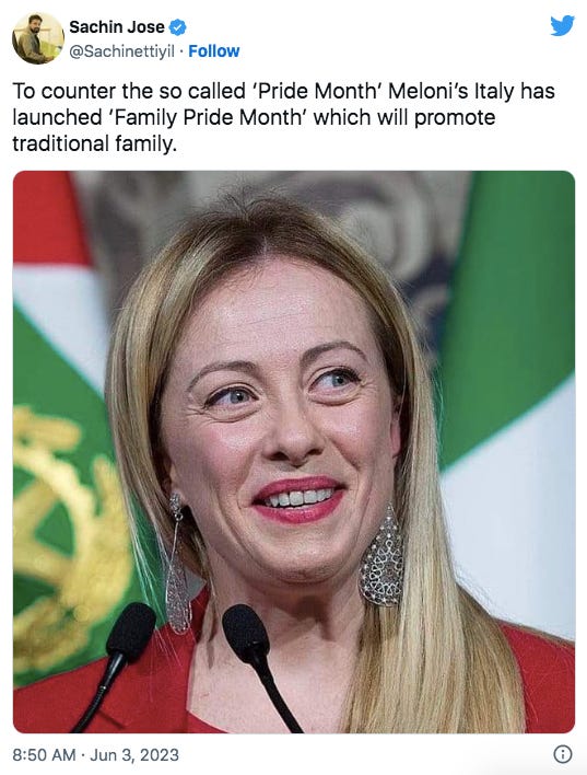 while Germany is sliding deeper and deeper into the ditch, I see with a sigh, that Italy is getting out of it. People are dying by the numbers from heart attacks, but Meloni at least stands against all this pride crap! May be there is hope for Europe!